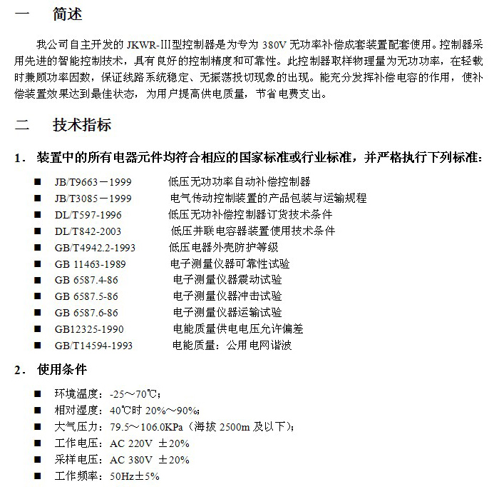 JKWR-I-IV嵌入式智能无功补偿控制器